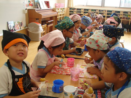 幼稚園ではひと足早いお月見パーティーをしました。