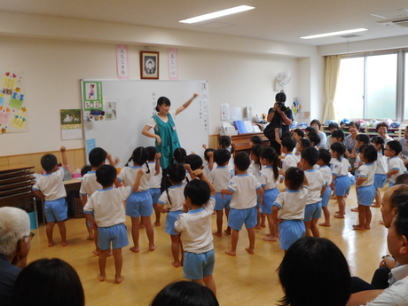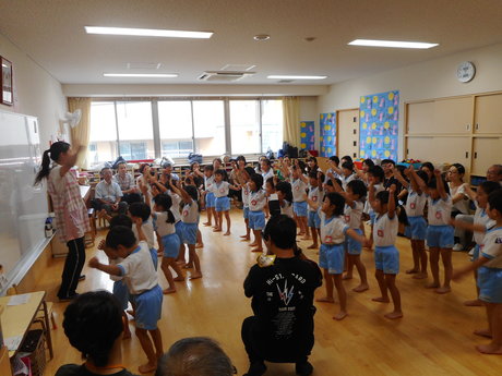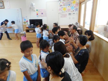 おじいちゃん、おばあちゃんと一緒にうたや体操、ダンスを楽しみました。