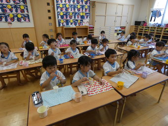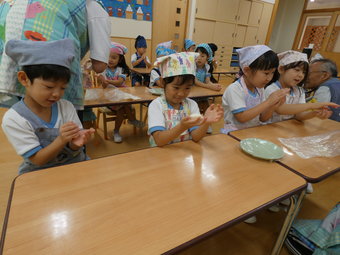 年長組 食育 『お月見パーティー』 年長組がお月見パーティーで、お月見団子を作りお供えしました。 できたてのお団子をみんなで食べ、「美味しいね」とニコニコの子どもたちでした。 2024年9月 6日 15:32